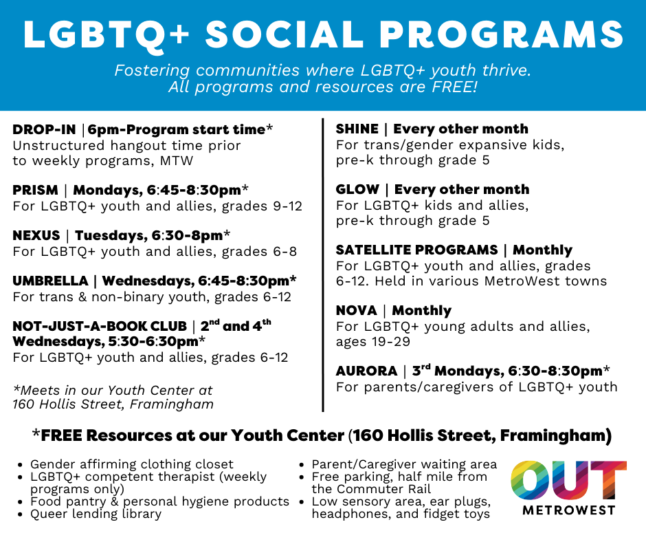 OUT MetroWest Weekly Group Programs: